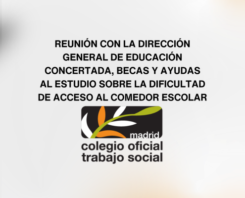 /en Noticias ProfesionalesEl pasado miércoles 18/03/2026 acudimos a una reunión con la Dirección General de Educación Concertada, Becas y Ayudas al Estudio de la Comunidad de Madrid a propuesta del Colegio Oficial de Trabajo Social de Madrid. El objetivo de la reunión era exponer nuestra preocupación sobre la dificultad en el acceso a becas de comedor escolar, […]