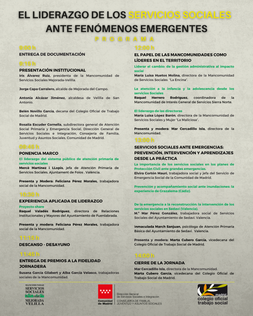 Además, se abordará el papel de los servicios sociales ante situaciones de emergencia, cada vez más presentes, ya sea por fenómenos atmosféricos, fallos en sistemas que creíamos estables, accidentes o incluso por el impacto de la situación geopolítica actual.